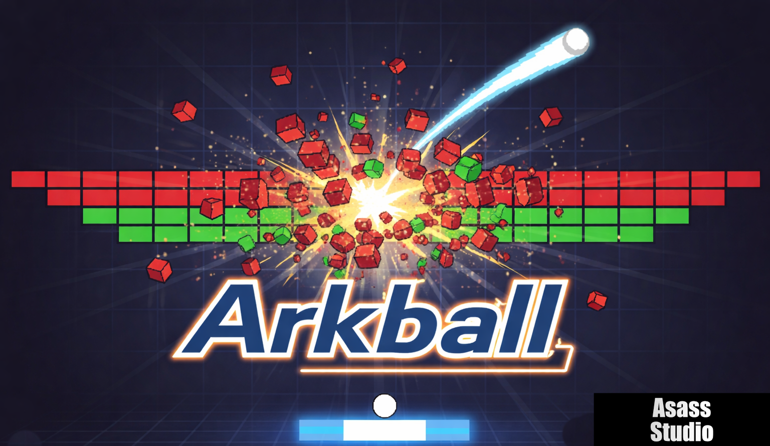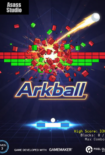 Arkball é um jogo arcade inspirado em Arkanoid/Breakout: controle a bola, destrua blocos coloridos, ganhe combos e powerups, e veja sua pontuação subir.